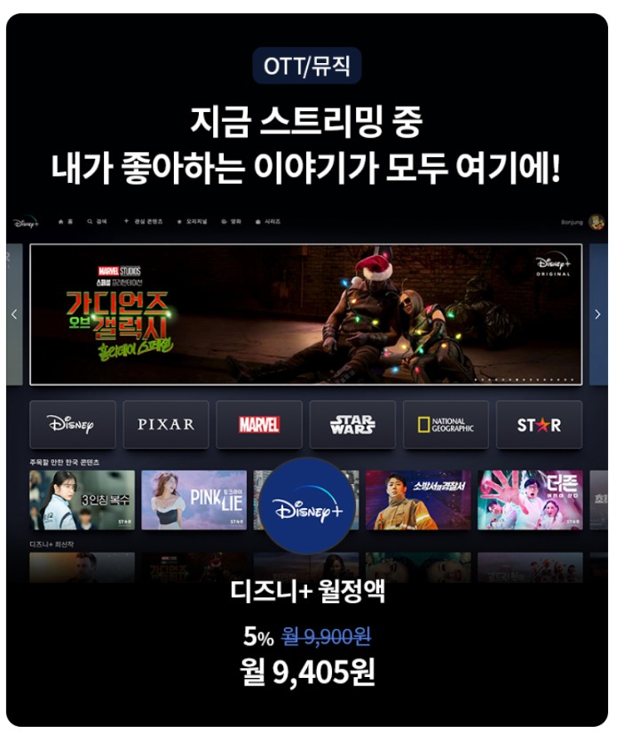 -디즈니플러스, 티빙, 넷플릭스, 멜론 50% 청구할인 (월 한도 5천 원)