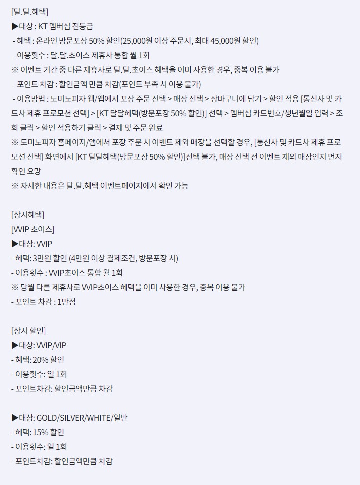 KT 멤버십 등급에 따라서 혜택이 달라집니다. 등급에 상관없이 할인받을 수 있는 곳도 있으니 할인율 확인해 보세요!